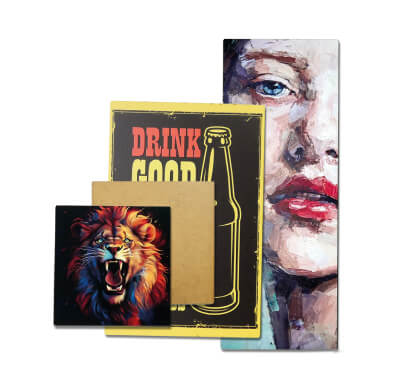 HDF signs with direct UV printing is a durable and stylish way to present information. It offers full personalization, the possibility of structural finishing and holes for easy installation. HDF signs are available in various sizes.