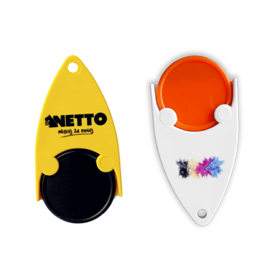 Keychain made of ABS and available in a wide range of colours. Customised with full colour direct print on the product or with a full colour 3D sticker. It can be attached to your keys, zipper, etc.